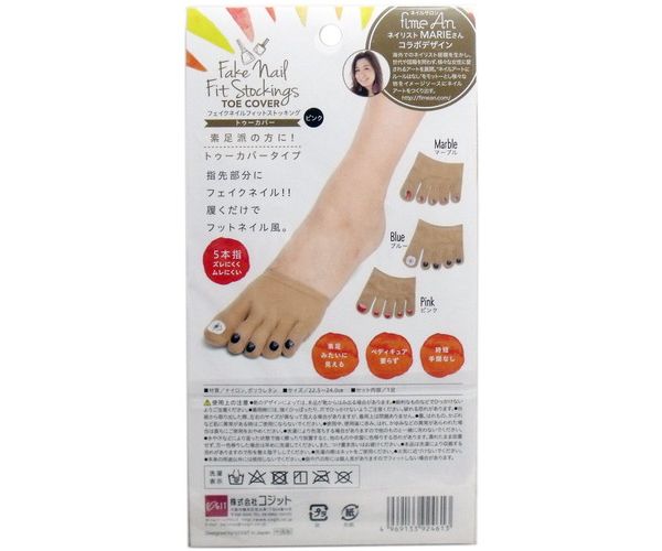 指先部分にフェイクネイル、履くだけでフットネイルの完成!素足派の方に!トゥーカバータイプ!●5本指でズレにくくムレにくい。