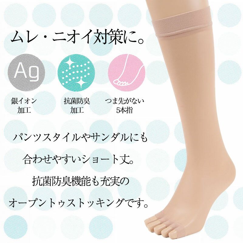 福助 つま先オープン 5本指 ストッキング ハイソックス丈の紹介福助(フクスケ)のオープントゥ 5本指ストッキングです。